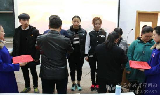 西安翻译学院为新团员颁发团员证、佩戴校徽