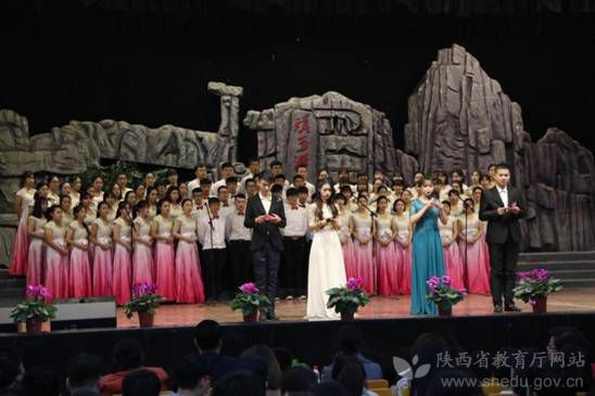 西京学院师生在纪念一二·九运动主题晚会上表演大合唱《飞跃大渡河》