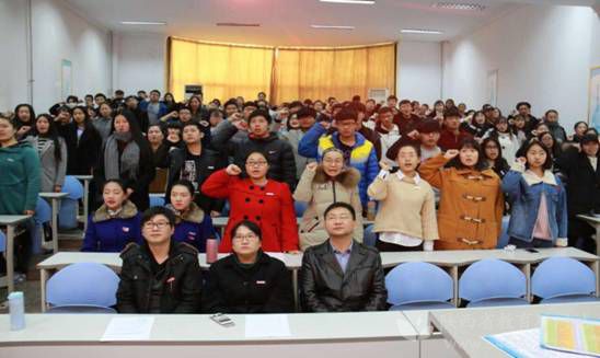 【西安翻译学院】12月9日下午,该院举行纪念“一二·九”运动八十一周年暨新团员入团仪式。仪式开始前,全体起立,并唱国歌、团歌,全体新团员庄重宣誓,随后,该院为新团员颁发团员证,并佩戴校徽,新团员代表在发言中表示:很荣幸自己能成为一名共青团员,以后会更加严格要求自己,遵守学院各项规章制度,努力学习,争做一名合格的大学生。该院领导表示,加入共青团是一个新的起点,新团员要从点滴中积累起来,不断提高自身素质。同学们应严格要求自己,使自己成为一名社会主义事业合格的建设者和接班人。